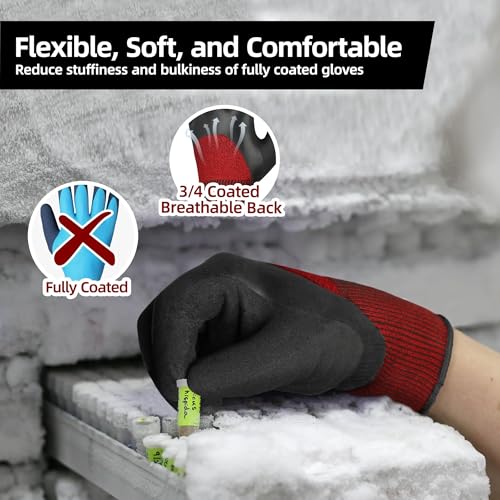 • DURABLE & ABRASION RESISTANT – Featuring a 3/4 double-dipped latex coating, these insulated work gloves offer superior abrasion resistance over palm-coated gloves. The design significantly enhances durability and lifespan, while extended back-of-hand coating improves waterproofing and wind resistance.