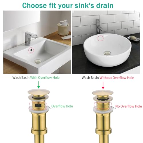 • Fits Standard Drain Hole:Our vanity sink drain fits the drain hole with a diameter of 1.61″ to 2.36″. Max sink thickness is 1.69″.