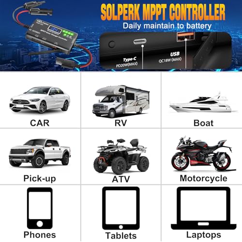 • Multi-layered safety protections for peace of mind: Integrating eight safety mechanisms including overcharge, over-discharge, overload, short-circuit, and reverse connection protection, the SOLPERK MPPT controller continuously monitors circuit status. It immediately disconnects power upon detecting anomalies, effectively safeguarding solar panels, batteries, and connected devices against property damage and safety hazards.