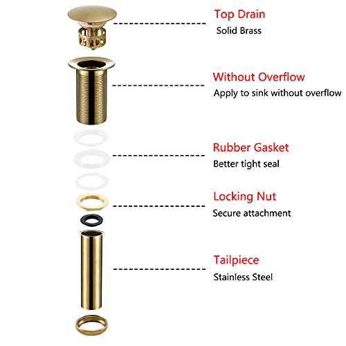 - ???Main Material?Our Champagne Bronze Pop Up Drain Consists of a Brass Body and a Stainless Steel Tail, Which Has The Functions of Explosion-Proof, Crack-Proof, Rust-Proof and Corrosion-Resistant. Champagne Bronze Surface Treatment Matches with your Champagne Bronze Bathroom Fixtures.