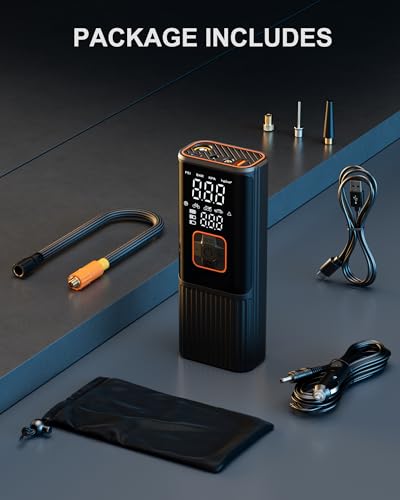 - Smart Auto-Stop & Dual Power Options: Effortlessly set your desired pressure–then let the pump do the work. It automatically shuts off when the target is reached, preventing over-inflation. Powered by a large-capacity rechargeable battery, with a 12V DC car adapter as a backup for continuous use anywhere.