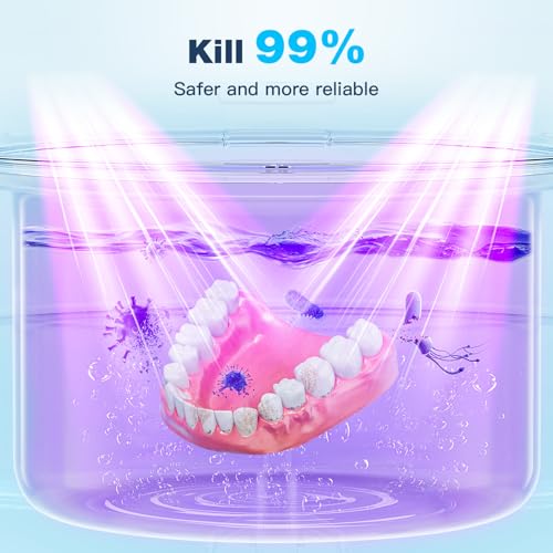 - 2X CLEANING POWER?Experience double effectiveness as the 45kHz ultrasound removes particles and the cleaning light achieves a 99% clean from the ultrasonic cleaner. Together, they deliver enhanced freshness and stain removal.