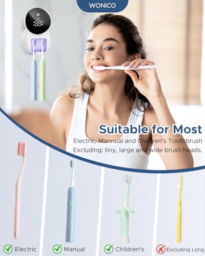 - Toothbrush Holders for Bathroom, WONICO Toothbrush Sanitizer Holder, Tooth Brush Wall-Mounted Cleaner Organizer with Auto-Inductive Cover, Air Drying Fits Most Electric, Manual and Kids’ Toothbrushes