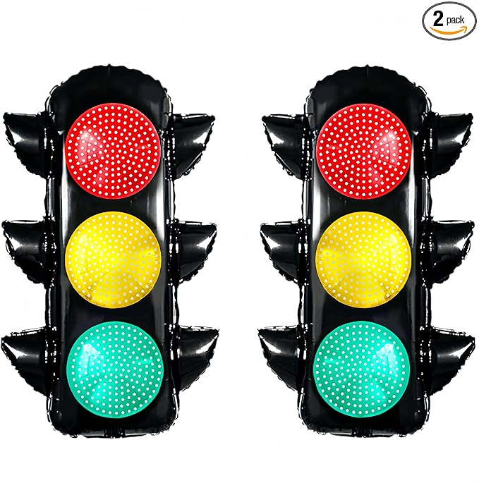 2 traffic light balloons (59.2Ă—80.6cm), 1 straw, and 1 roll of 10m ribbon; supports helium and air inflation.