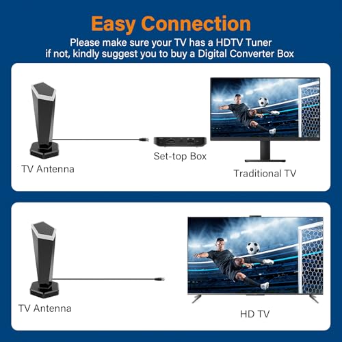 - Easy to Installation: Antena para tv smart is suitable for installation anywhere. It is installed on the wall/window roof or other stable locations with the screws within minutes. You can also position it horizontally or vertically to optimize signal reception. Setting up this tv antennas is as easy as 1-2-3: unwrap, plug it in, and scan for channels