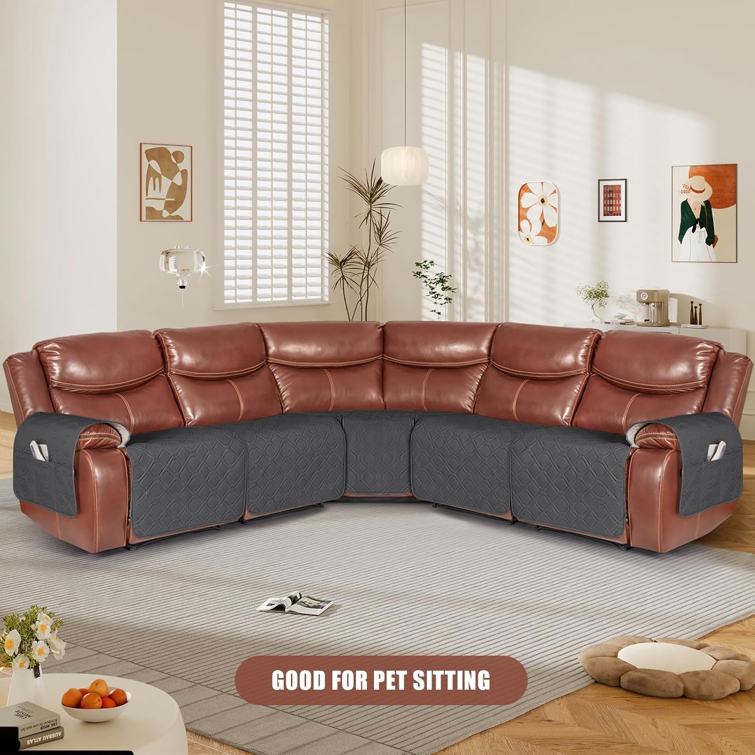 VANSOFY patented 5-piece sectional recliner sofa cover includes 2 armrest covers, 2 armless covers, and 1 corner cover.