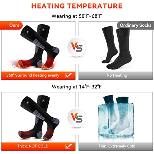 - ?360? Even Heating?Our Upgraded electric socks replace the traditional heating wire with a heating sheet,which has a larger heating area. The heating is even, won’t burn your feet and promote blood circulation. It is helpful for outdoor sports enthusiasts, people who are afraid of cold, arthritis or Raynaud’s syndrome.