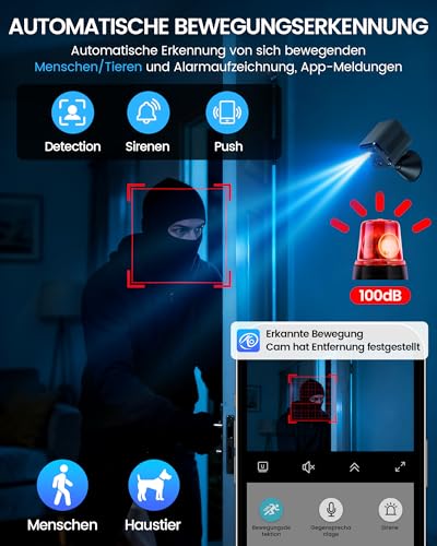 - Zwei-End-Sprachsprechpartner: Unsere Uberwachungskamera ist mit einem Mikrofon und einem Lautsprecher ausgestattet, mit dem Sie uber die App und die Kamera mit anderen kommunizieren konnen
