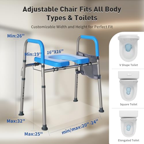- ?Fully Adjustable Fit: Every user has unique needs–so we designed this elevated toilet seat with handles to be fully adjustable in both height and width. The seat height ranges from 19″ to 25″, and the width adjusts from 20″ to 24″, making it suitable for different body types and toilet sizes (standard or elongated). As mobility changes over time, the seat can be re-adjusted to continue providing maximum comfort and safety.