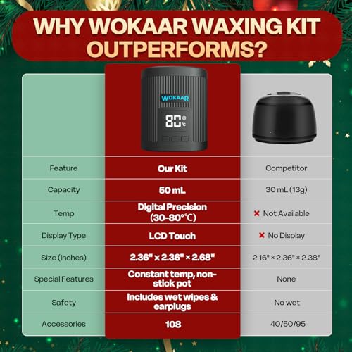 - PRECISE DIGITAL TEMP CONTROL & DIGITAL SAFETY: Enjoy safe and effective waxing with adjustable digital temperature control (86?F-176?F). The smart thermostat and fire-resistant housing protect sensitive skin, ensuring peace of mind during at-home use. This expert-guided feature, supported by a dual-language manual, makes professional results accessible to all.