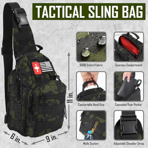 - ?Tactical MOLLE-Compatible Crossbody Bag?Built with heavy-duty 1000D nylon fabric, this tactical crossbody bag delivers superior water-resistant and tear-proof performance for all your survival gear and equipment. The MOLLE webbing system reinforced D-rings provides customizable expansion options, letting you attach additional pouches or tools for extra storage capacity . The multi-compartment design keeps survival gear and supplies organized, and maintains quick access to essentials.