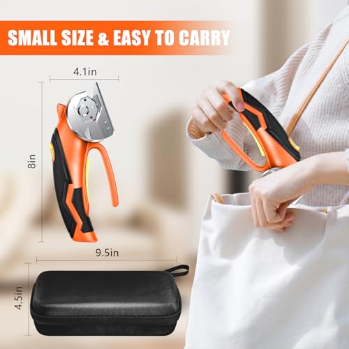 - The cordless electric scissors and all accessories come in a customized carrying case so you can take them anywhere and protect yourself from the sharp blades when not in use, as well as better store this power tool.