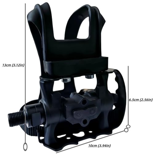 - ?? Universal 5-Minute Installation?9/16″ Standard Thread: Fits 99% road/mountain/Spin bikes (Schwinn/Peloton/Sunny compatible), Specs: 3.94″L x 2.56″W platform with 5.12″ reinforced clips (US standard sizing), Low-Profile Design: 23mm thickness prevents ground scraping during sharp turns, Triple Safety System: Diamond-cut treads + 15? clearance design + non-slip edge guards