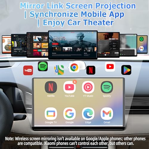- WARNING! Please Note: This product is NOT compatible with iPhones. Additionally, wireless screen mirroring is NOT supported on Google (Android) or Apple iOS devices. This product ONLY works if your vehicle ALREADY has built-in Mirror Link/Android Auto. If your car is NOT Mirror Link/Android Auto compatible, DO NOT purchase this device.