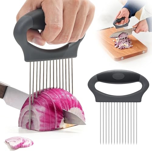 Multifunctional Slicer Tool: YUNHOME Onion Slicer Pro features 14 stainless steel forks under the handle, ensuring a secure grip and preventing slippage while slicing onions, tomatoes, lemons, or meats. Its design promotes uniform slicing for even cooking and professional-looking presentation.
