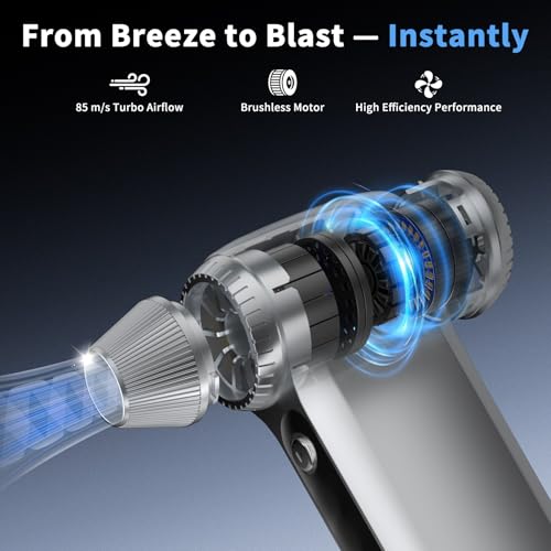 - 200,000RPM Brushless Turbo Motor — Power Beyond Limits: Experience next-level performance air duster with our advanced 200,000RPM brushless motor, delivering a staggering 85m/s ultra-high wind speed. Delivering concentrated, high-velocity airflow, it removes stubborn particles instantly — without physical contact, moisture, or residue.