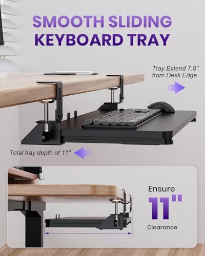 - Stable And Smoothly Structured – The keyboard tray extends up to 7.8 inches from the desk edge, offering a secure and stable platform that enhances typing comfort for both work and gaming applications. A built-in back baffle prevents the keyboard from sliding, ensuring safe and efficient typing. Additionally, an upgraded slide mechanism guarantees smooth extension and retraction of the tray.