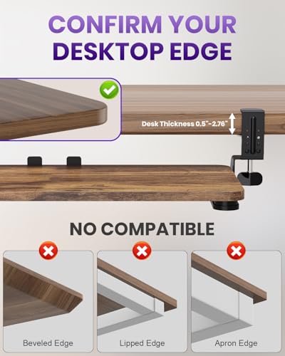 - Easy To Install – The keyboard tray included beneath this desk comes equipped with all necessary hardware components and detailed instructions, facilitating a straightforward installation process that can be completed within five minutes. The adjustable clamps do not require drilling and are compatible with a variety of desk configurations. PLEASE NOTE: The total length from clamp to clamp measures 25.9 inches; therefore, please ensure your desk has sufficient space before purchasing.