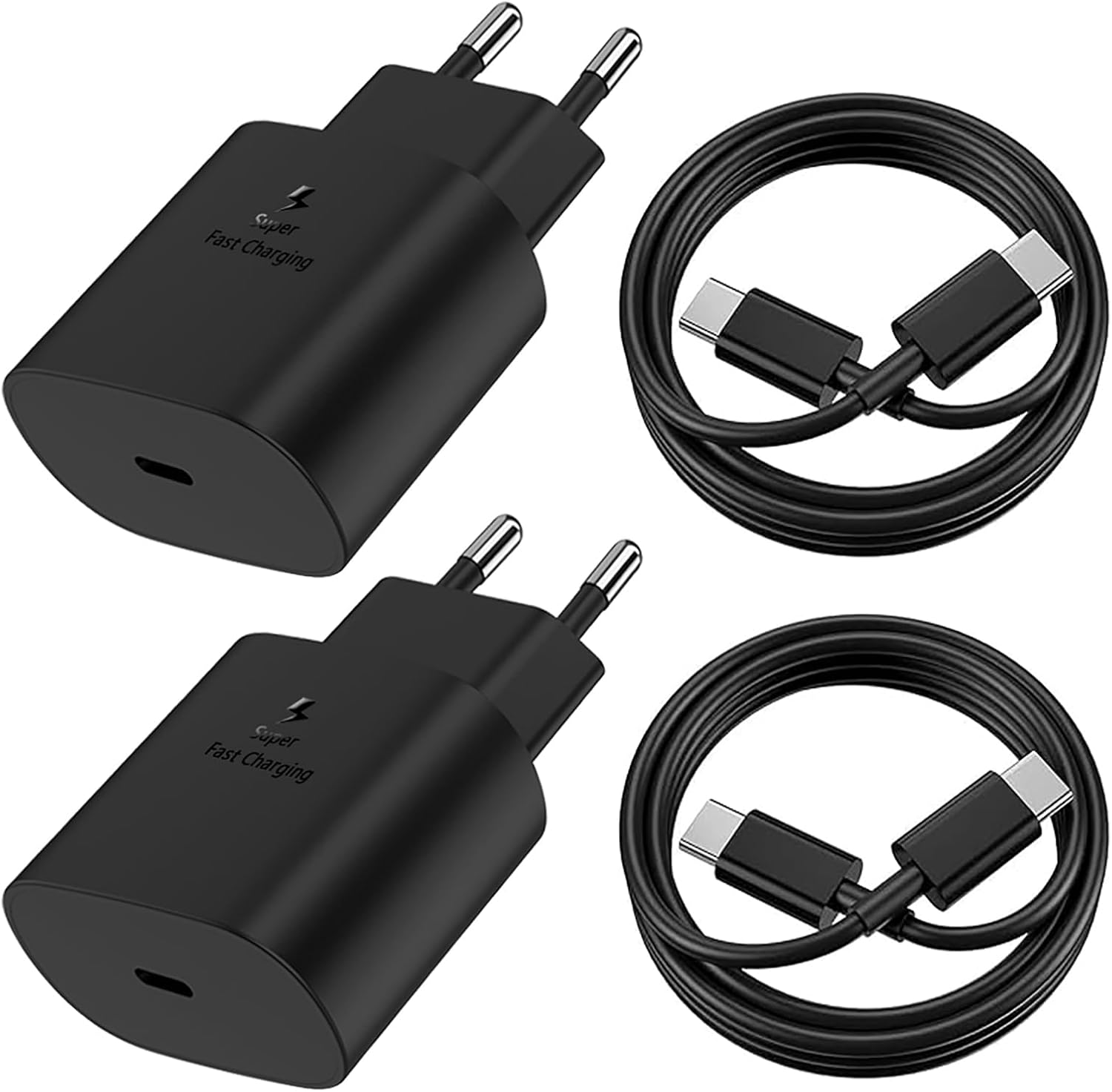 2 Ă— 25W USB-C fast chargers, 2 Ă— 2M Type-C to Type-C cables, 24-month warranty, and 24-hour customer service.